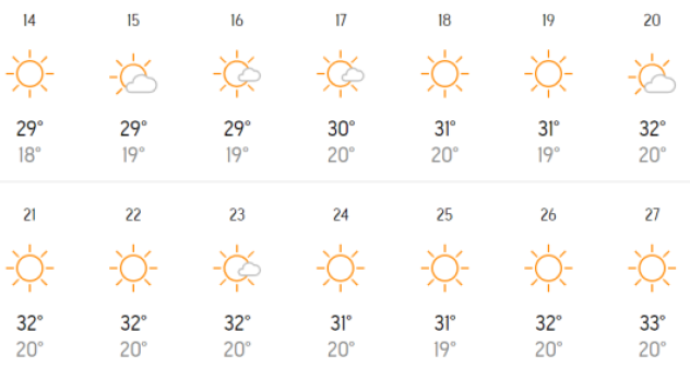 Julio es un mes de mucho calor, por lo que se recomienda mantenerse hidratado. Todos los espacios internos (clases, hospedaje, etc.) cuentan con aire acondicionado.